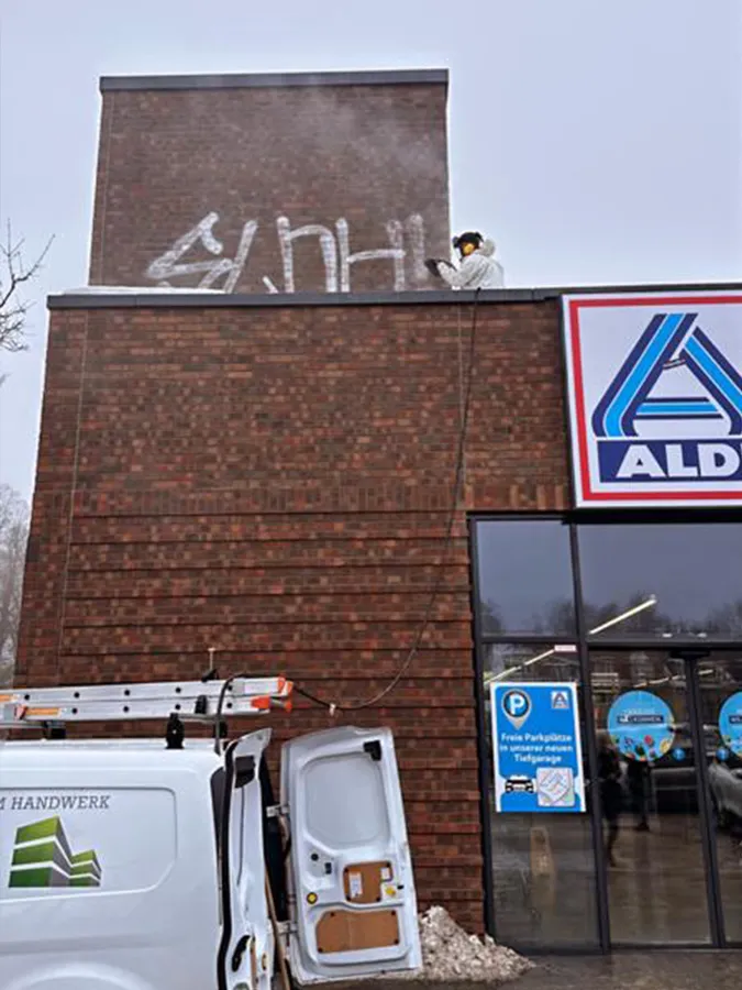 entfernen wir zuverlässig Graffiti, Farben, Lacke, Rost, alte Beschichtungen u. a. Verunreinigungen,